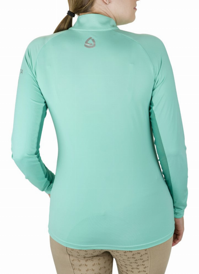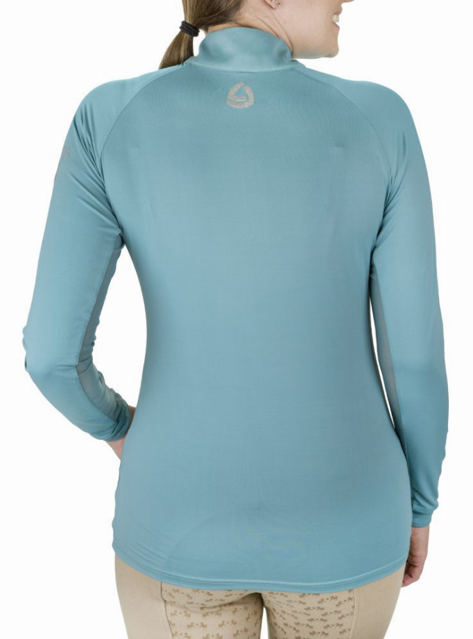 Take your equestrian style to a whole new level with this Quarter-Zip Neck UPF 50+ Sun Shirt from the appeal collection from Lettia. Designed with cooling mesh underarm inserts for providing high sweat-wicking properties while the protective feature of the shirt protects you from the harmful UV rays. Spun from the blend of nylon and spandex fabric which keeps the skirt comfortable, soft, and flexible for your body movements. Moreover, the quarter zipper neck design gives a sophisticated look to your neckline with an ease-wearing feature. This protective sun shirt is also available in eight different colors and the front logo adds a classy essence to your overall look.
